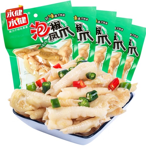 Vente en gros de collations asiatiques à la saveur chinoise pieds de poulet au poivre mariné 100g pieds de poulet épicés
